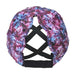Finally, a golf cap made for you. This GLOVE IT cap celebrates smaller head sizes with a striking purple, magenta cosmic splash design that turns heads on the course. The pre-curved 2.5" bill with anti-glare black underbrim keeps the sun out of your eyes, while UPF 50+ protection shields your skin. Engineered with lightweight fabric, stitched eyelets for breathability, and lined front panels for a polished fit, this cap delivers both comfort and confidence. The innovative criss-cross back panel allows your ponytail to be pulled through. The secure Velcro® closure ensures a perfect fit for sizes 54-56 cm. Play your game without compromise.
