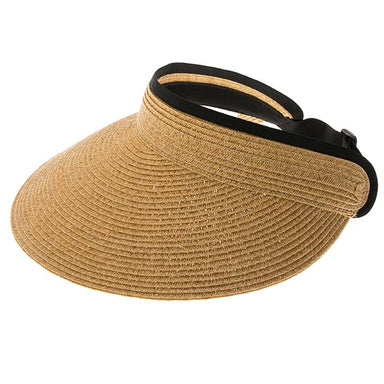 Wide Bill Straw Sun Visor with Slide Adjuster, Fits S-XL Sizes - Boardwalk Style